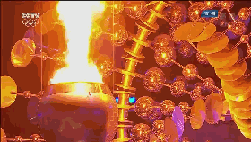 圣火盆后方有根據(jù)熱風旋轉設計的螺旋雕塑,使圣火光芒放射成太陽狀。其中主火炬塔的雕塑為動態(tài)雕塑,第二火炬塔的雕塑為靜態(tài)雕塑。