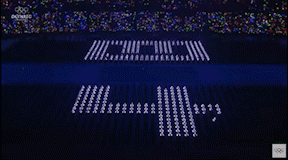 這可能是開幕式上最具創(chuàng)意的一個節(jié)目,穿著以藍色和白色為主色調的卡通緊身衣的演員們,用日本老牌節(jié)目“超級變變變”的畫風演繹了奧運會所有的項目圖標。
