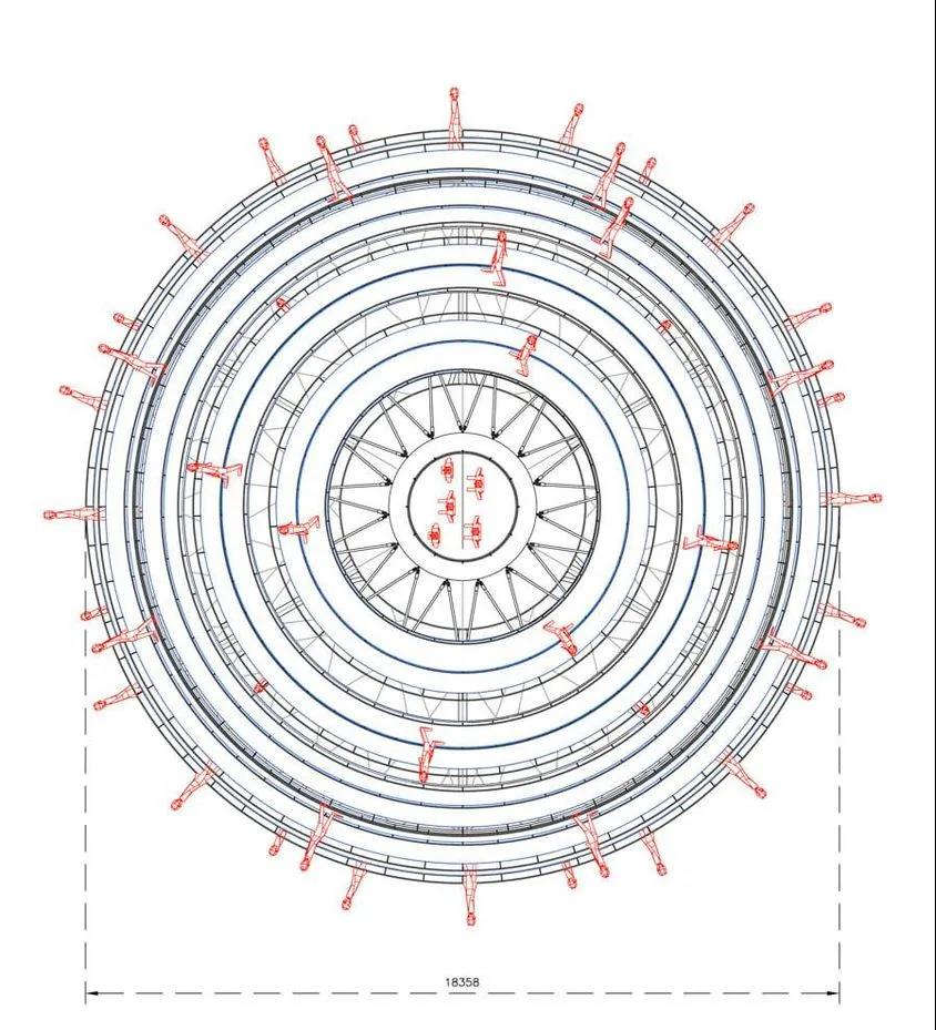 地球儀成為核心,該球體由九個緯度環(huán)組成。彰顯全球團結之意。