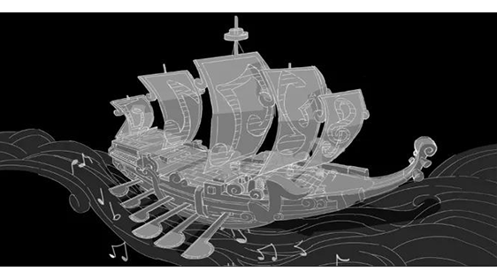 最能直觀體現(xiàn)粵港澳大灣區(qū)特色的音樂(lè)作品,非《大灣區(qū)協(xié)奏曲》莫屬了。通過(guò)虛擬技術(shù)呈現(xiàn)了兩艘“音韻之船”,兩船在創(chuàng)作結(jié)構(gòu)上首尾呼應(yīng),在大灣區(qū)的夜景中乘風(fēng)破浪,從過(guò)去駛來(lái),向未來(lái)奔赴,構(gòu)成了絢麗多姿又直抵人心的壯麗景觀。