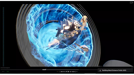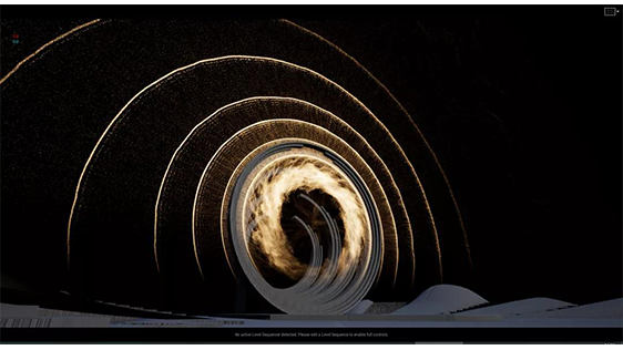 在歌曲《再回首》中,提取出歌詞中的時(shí)間概念,用UE4虛擬現(xiàn)實(shí)技術(shù),在舞臺(tái)立面以主視覺(jué)鐘表為意向,表達(dá)出時(shí)間流逝的氛圍感。地面則主打空間概念,采用裸眼3D技術(shù)為兩位歌手打造出獨(dú)立的空間舞臺(tái),尤其是副歌合唱部分,以影像搭建空中通道,實(shí)現(xiàn)兩位歌手的匯聚演唱,輔助音樂(lè)會(huì)營(yíng)造了一次頗具儀式感的表演場(chǎng)景。
