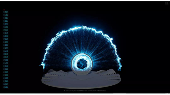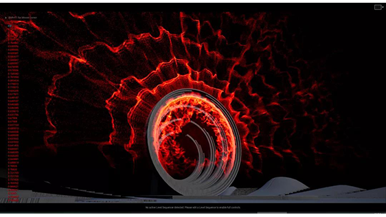 《競(jìng)先組曲》是導(dǎo)演組特別打造的純器樂(lè)競(jìng)演節(jié)目,以樂(lè)手之間的指尖競(jìng)速,表達(dá)粵港澳大灣區(qū)發(fā)展之迅速。在節(jié)目中,首次使用音頻實(shí)時(shí)驅(qū)動(dòng)粒子特效技術(shù),特別提取40余條分軌音頻,經(jīng)反復(fù)測(cè)試,讓視覺(jué)特效與音樂(lè)達(dá)到最大程度的配合與交融,為整個(gè)音樂(lè)表演環(huán)境,營(yíng)造激烈、熱烈的氛圍感。