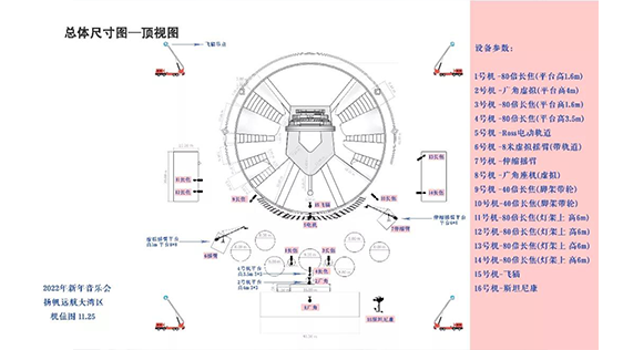 本次新年音樂(lè)會(huì),導(dǎo)播盧剛為更好的呈現(xiàn)電視畫面,將機(jī)位拍攝細(xì)節(jié)位置做了重點(diǎn)規(guī)劃,同時(shí)啟用4K轉(zhuǎn)播車共16迅道攝像設(shè)備。其中座機(jī)11迅,特種設(shè)備機(jī)位5迅??紤]到拍攝場(chǎng)地各種因素,本次對(duì)長(zhǎng)焦鏡頭的需求較大。