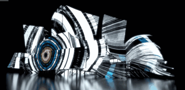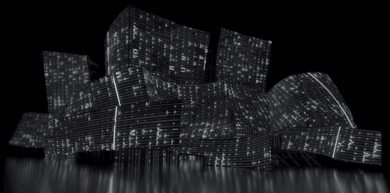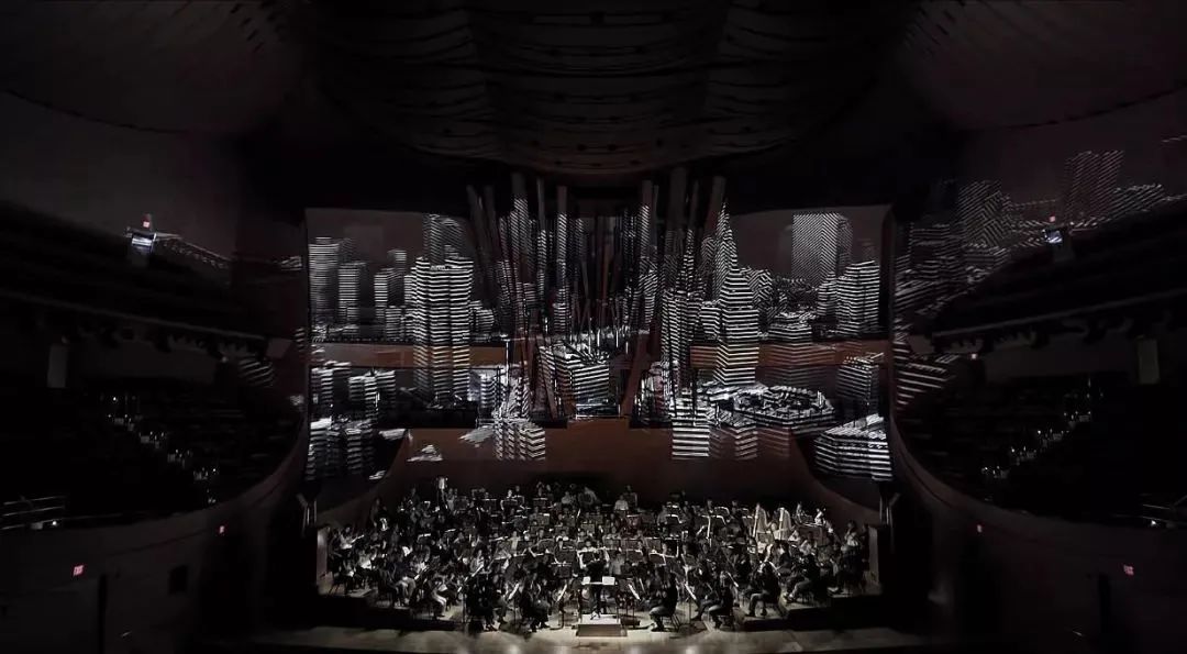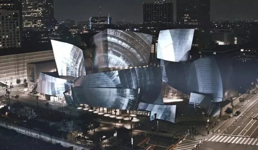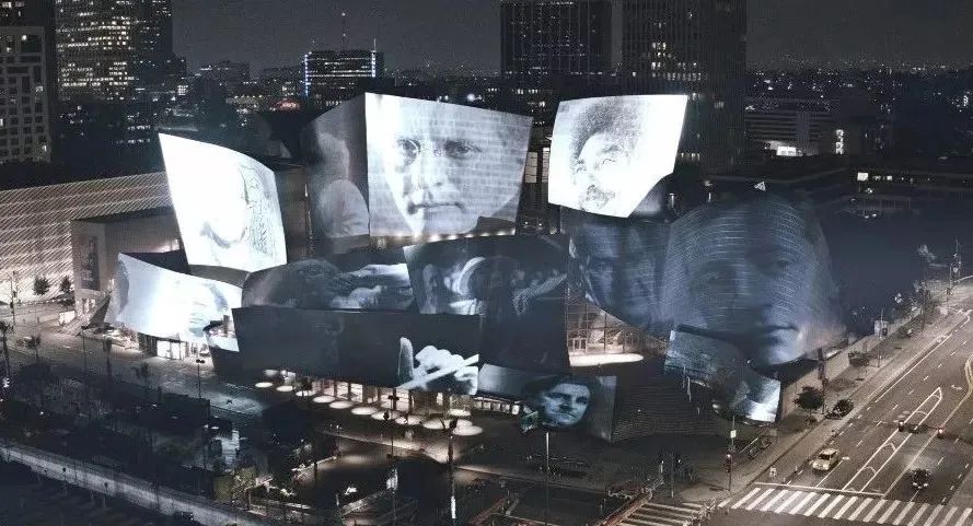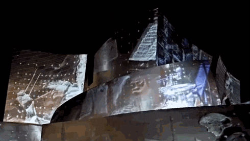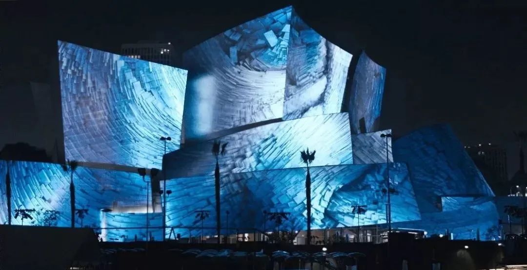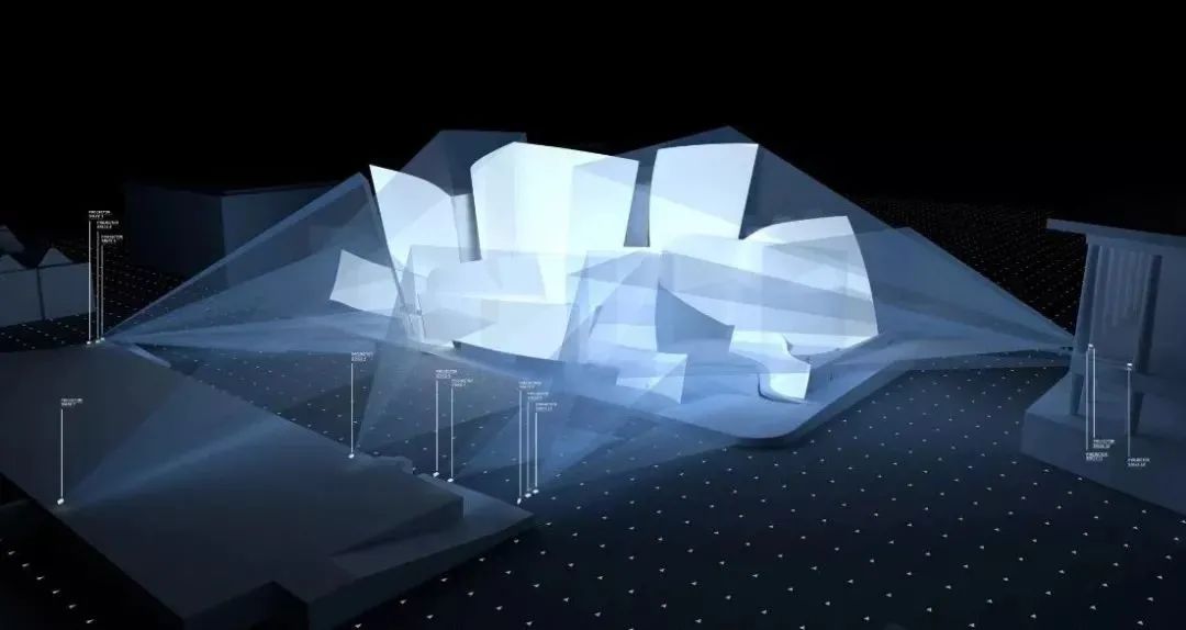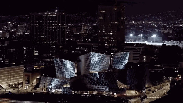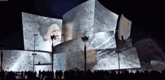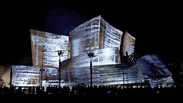 投影在當代著名建筑師Frank Gehry設計的音樂廳上