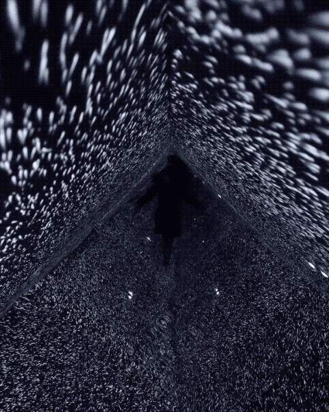 使用四臺投影機進行投影,配上類似囈語的配樂,把觀眾包裹進這虛幻的空間。
