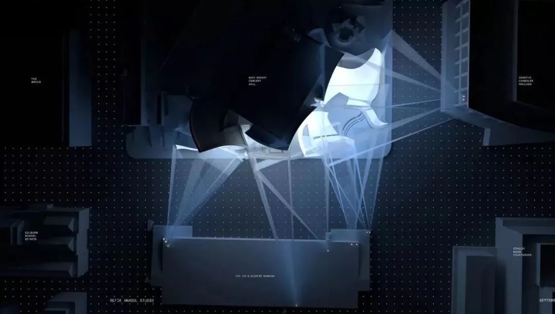 洛杉磯愛樂樂團為慶祝百年誕辰,與Refik Anadol合作,在洛杉磯市中心呈現(xiàn)了為期一周的公共藝術裝置「WDCH Dreams」。