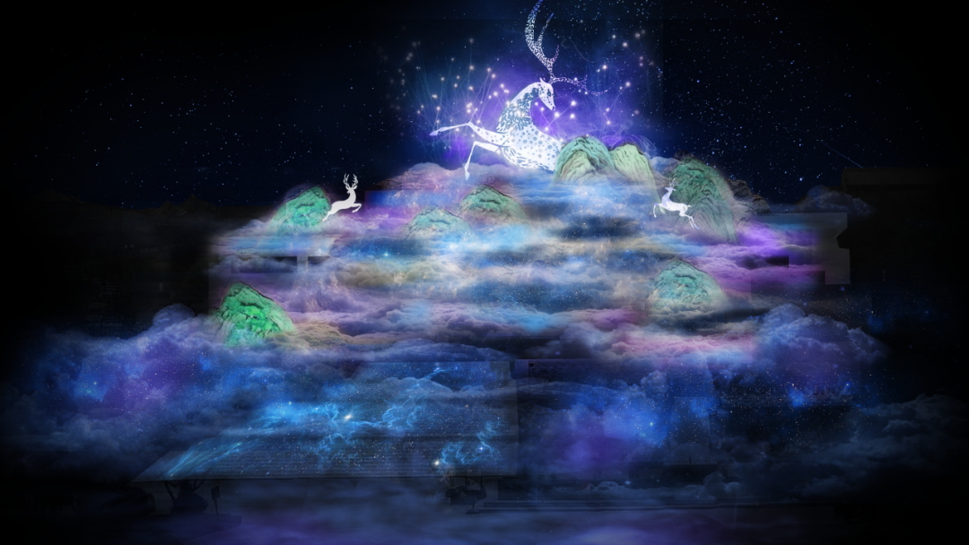 《夜譚·白鹿原》依托白鹿原影視城的自然風(fēng)貌以及陳忠實(shí)小說《白鹿原》進(jìn)行藝術(shù)創(chuàng)作,以白鹿、仙草、愛情、家國為核心元素,由入境尋光、鹿林仙境、月下鹿影、仙草叢林、神鹿降世、月下斑斕、白鹿生靈、云端夢境、蝶戀紛飛、叢蔭尋影、星途喚月、家國大愛、白鹿化仙十三個(gè)分區(qū)場景貫穿而成。