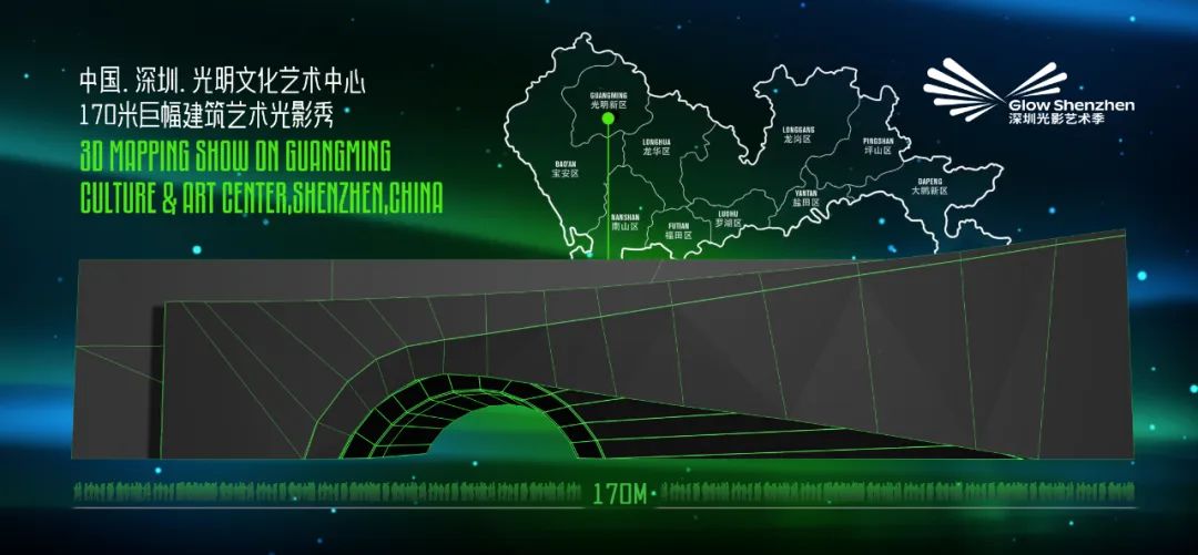 繼2020年深圳光影藝術(shù)季,幻鯊文化SKG+在深圳明華輪創(chuàng)作了一場光影大秀后。在2021年的光影藝術(shù)季上,團(tuán)隊(duì)再次應(yīng)邀,在深圳光明城創(chuàng)作了這部超大型的Mapping作品“光之城”。