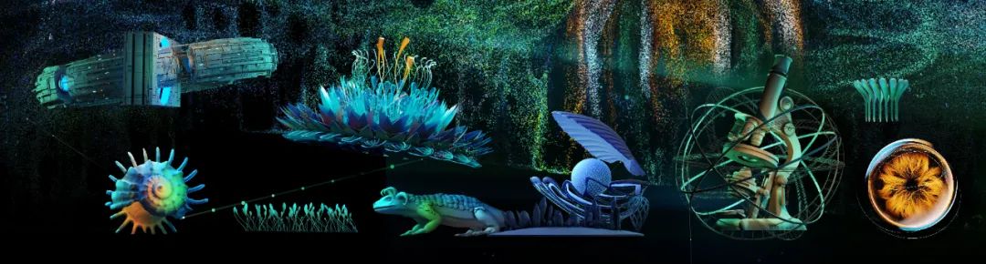 深圳是一座海濱城市,擁有著海洋豐富的資源,也受著海洋文化的深刻影響;這個(gè)篇章我們會(huì)運(yùn)用:鯨、貝殼、海蜥蜴、水母等代表性的海洋生物,它們會(huì)帶領(lǐng)我們尋找海的每一處角落,在時(shí)間和空間的容器內(nèi),多樣物種同時(shí)存在著,隱隱約約,似近似遠(yuǎn),這些遠(yuǎn)古或現(xiàn)代的生物像是一條連接時(shí)間與空間的紐帶,始終在給我們指引著方向。