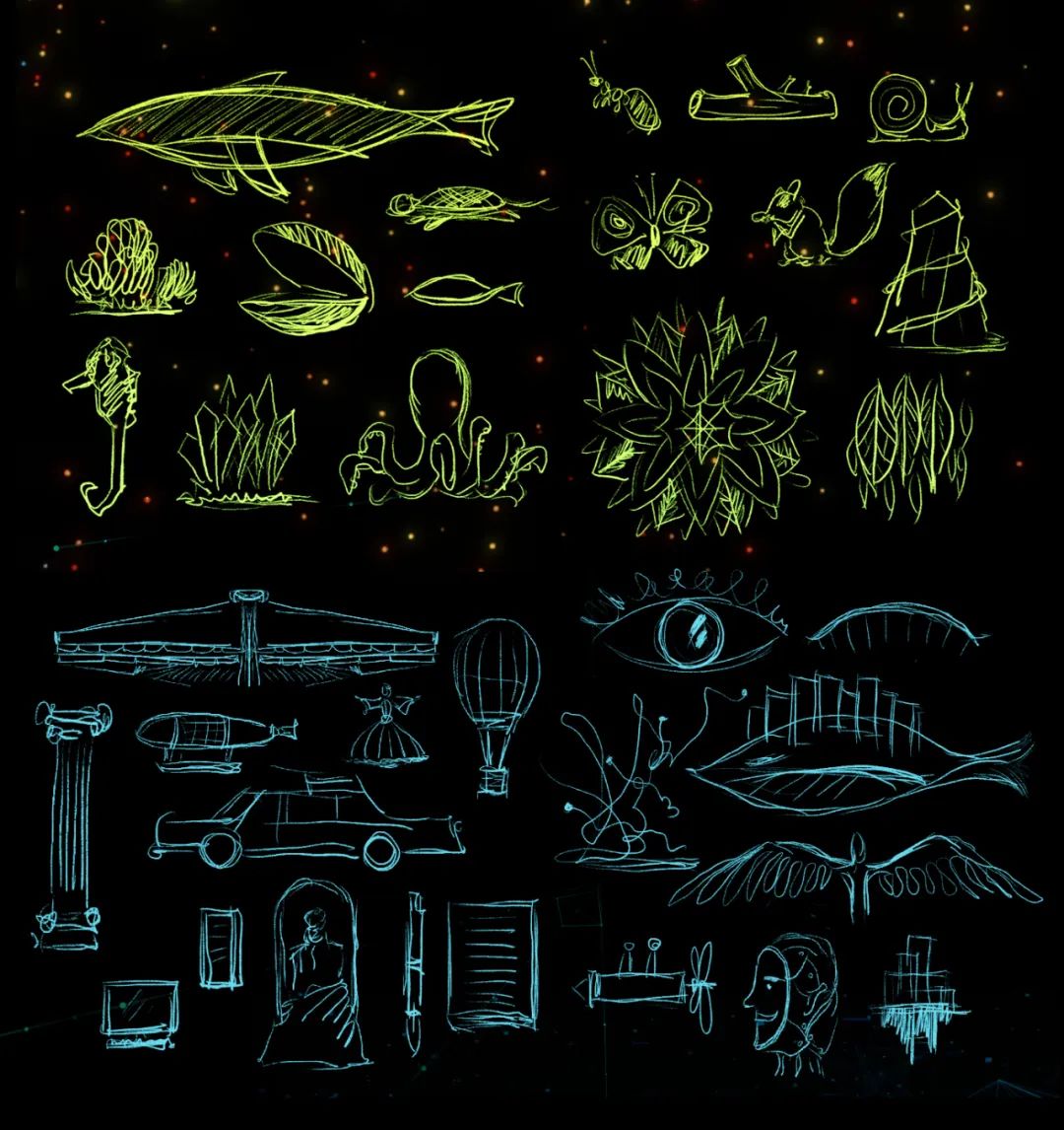 “光之城”講述了一段似真而幻的夢(mèng)境,有關(guān)“宇宙、海洋、自然、繁花、城市、文明、日常、幻想、意識(shí)”的片段被拼貼重構(gòu),創(chuàng)作團(tuán)隊(duì)通過對(duì)真實(shí)存在的元素的再加工,將真實(shí)和虛構(gòu)進(jìn)行編織。