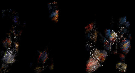 每部藝術(shù)作品都需要足夠的設(shè)計(jì)力量為藝術(shù)的表達(dá)做支撐,才能把藝術(shù)表達(dá)的核心和宗旨順利表達(dá)出來。這部作品在色彩上我們用了疊混的方法,每一種元素每一個(gè)圖層我們都設(shè)計(jì)了數(shù)十種色彩的底板,利用動(dòng)畫軟件中各種色彩計(jì)算的方法,進(jìn)行層層疊加和融合,這樣觀眾看來,每一種色彩仿佛在流動(dòng),而不是固定死、一塵不變的。才能產(chǎn)生一種夢(mèng)境的感受。