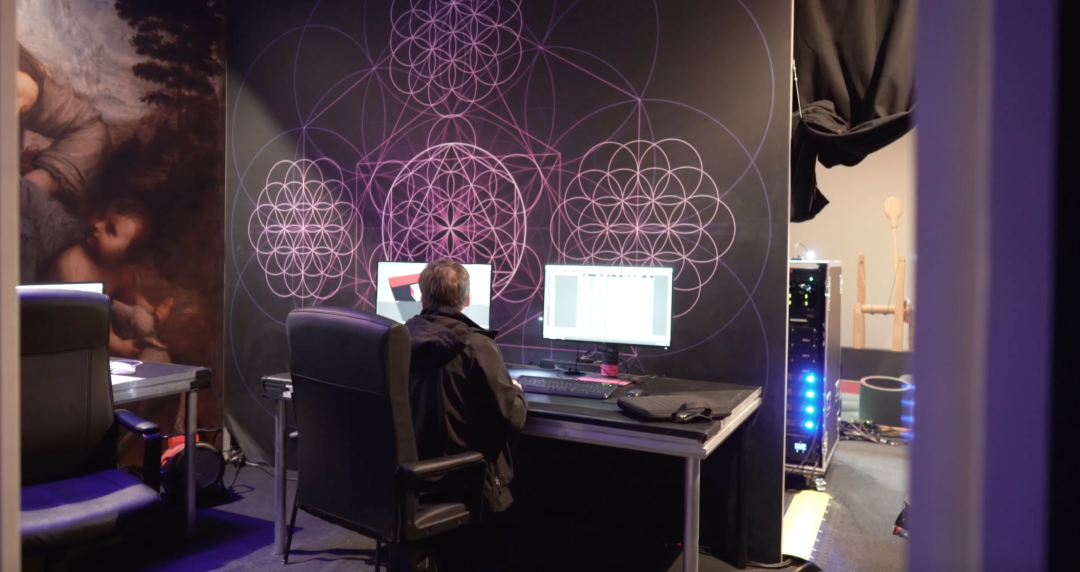 在技術(shù)規(guī)劃之后,Pixway負(fù)責(zé)投影儀的安裝、視頻控制室的配備和disguise節(jié)目的編排,同時(shí)與Leigh Sachwitz和FFV團(tuán)隊(duì)保持密切合作;另一項(xiàng)任務(wù)是校準(zhǔn)傳感器并使用 Stage Precision軟件對(duì)其進(jìn)行編程。“Stage Precision為我們的應(yīng)用程序添加并集成了額外的傳感器到他們的軟件中。”來(lái)自Pixway的Nevil Jeremias補(bǔ)充道。最終,360°多聲道聲音通過(guò)時(shí)間碼從disguise中進(jìn)行控制,互動(dòng)的音效通過(guò)OSC從Notch RX直接觸發(fā)到QLab上。
