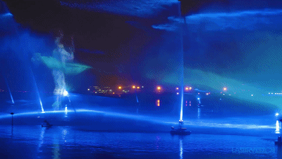 迪拜Festival City舉辦過一場(chǎng)水光投影秀,這個(gè)作品是由Laservision Mega Media團(tuán)隊(duì)設(shè)計(jì)創(chuàng)作,其靈感來源于一個(gè)影像故事'A Child's Dream’,故事講述的是一個(gè)小男孩通過飛機(jī)、鯨魚、樹屋和跳舞的機(jī)器人等這些虛構(gòu)的事物來譜寫他的神奇之旅。