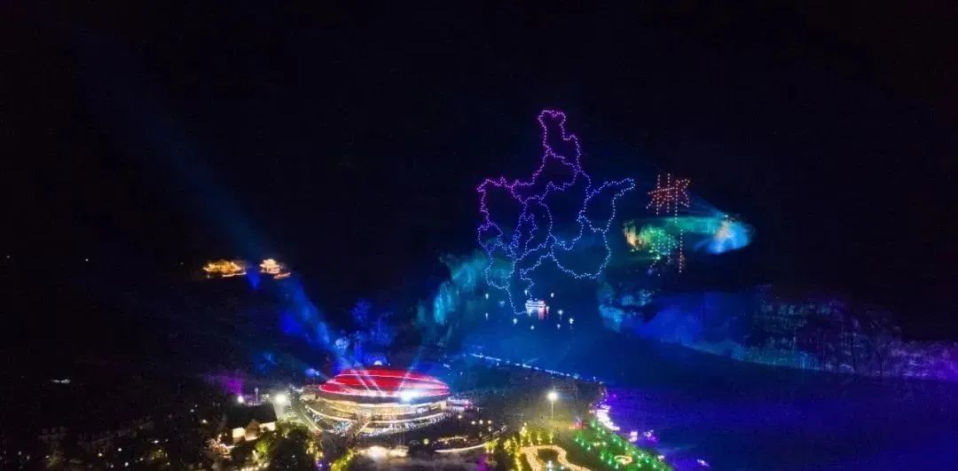 翠江夜游共分為兩大版塊——飛天山實景演藝中心和翠江游園,其中飛天山實景演藝中心,整體呈半圓球狀,用地面積380畝,依山伴水而建。