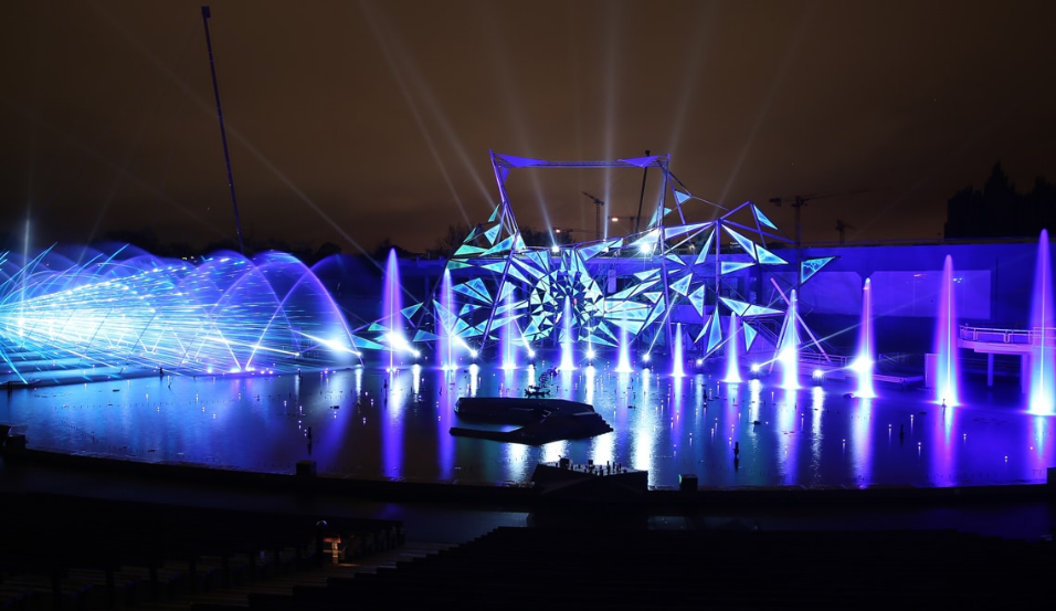 100 個(gè)噴水器、20 個(gè)火焰、300 個(gè)光點(diǎn)、數(shù)十個(gè)光源、4 個(gè)激光、配有40 個(gè)揚(yáng)聲器的音響系統(tǒng),一個(gè)7米高的機(jī)動(dòng)手臂,攜帶移動(dòng)的火焰和水射流,讓La Clé des Songes 表演變得栩栩如生。