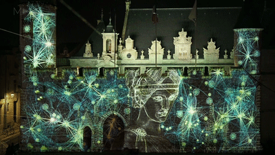 “ArchiBio”是布拉格信號燈節(jié)上的一個作品,使用三維掃描、三維打印等技術(shù)所做,將微觀世界的影像放大投影到建筑之中。