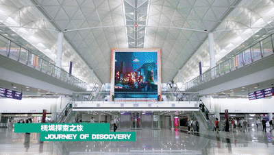 2022年7月1日,香港國際機(jī)場1號航站樓安裝了多臺大型多媒體裝置,在“探索之旅”的口號下,航站樓的擴(kuò)建和振興旨在慶祝香港精神。
