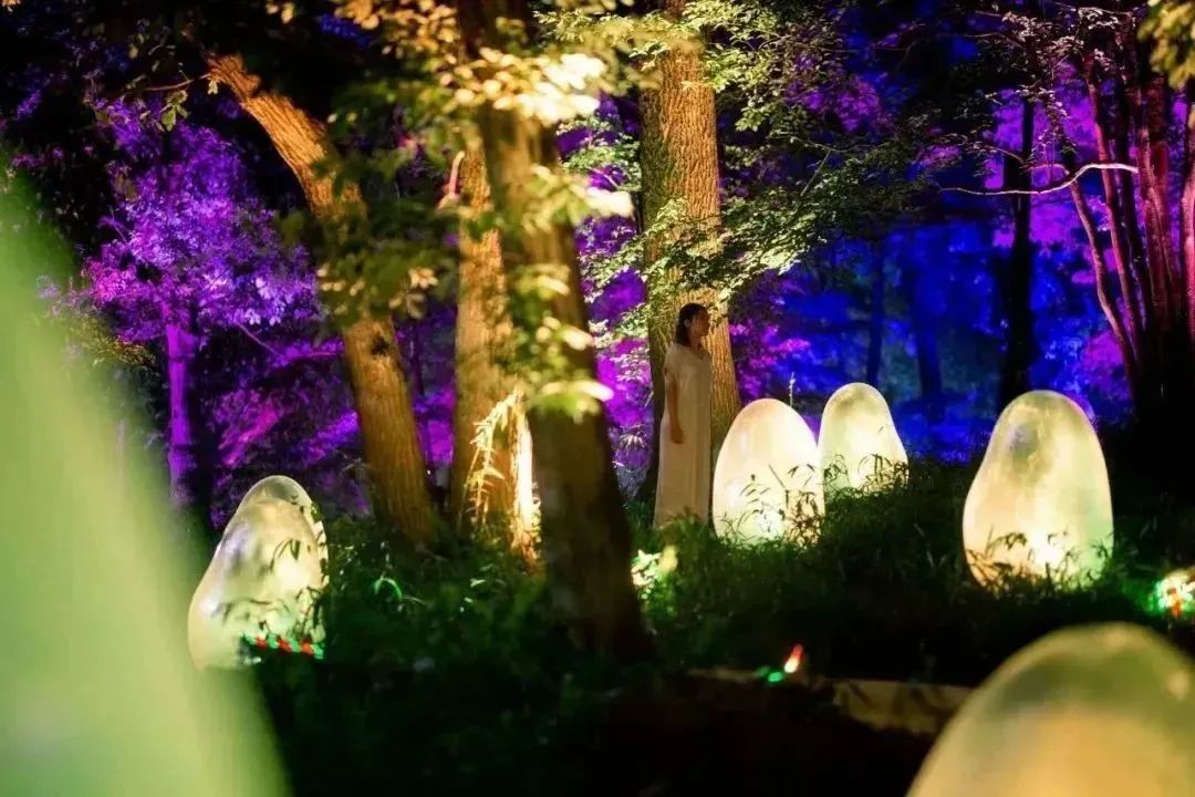 安靜時(shí)刻,57種“液化光色”隨機(jī)變換,散發(fā)耀眼光芒,一呼一吸閃爍著,整個(gè)森林變成了夢幻唯美空間。