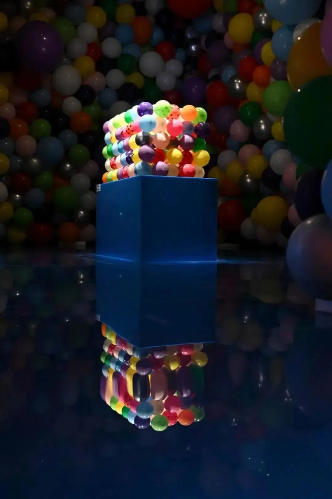 布魯克林氣球公司的羅伯特·莫伊設(shè)計了一間沉浸式的房間,圍繞著藝術(shù)家的彩色環(huán)氧樹脂和彩繪氣球箱,里面有更多的氣球。在登上一組帶有條紋的樓梯后,游客到達“夢幻景觀”,在那里,其他的旅行箱設(shè)計作品在生動的而充滿創(chuàng)意的透視法中被展示。