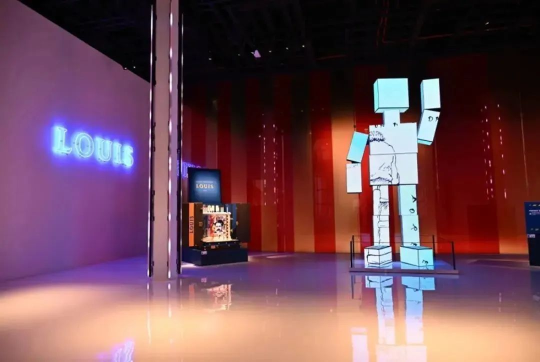 路易.威登(Louis Vuitton)的“200個行李箱200個夢想家”展覽占據(jù)了一整座建筑,其大窗戶被充滿活力的條紋包裹著。一旦進入室內(nèi),游客將會遇到一個“機器人”造型的行李箱,在那里,一個個鑲嵌著數(shù)字屏幕的行李箱——“魔盒”——連接著近200年歷史的過去和未來。