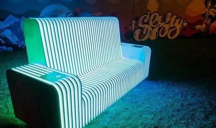 “Vena Lumen”的意思是脈沖光,在這個(gè)令人驚嘆的長(zhǎng)凳上坐下,將手放在傳感器上,觀察它將你的心跳變成舞動(dòng)的燈光。展示了兩種生命碰撞并結(jié)合在一起,彼此成為一體。