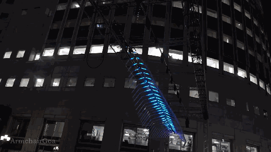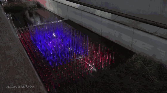 500多個(gè)照明丙烯酸棒安裝在一個(gè)水渠,這件吸引人的藝術(shù)裝置從上面看有規(guī)律地改變顏色。無論是在白天還是夜晚,其跳動(dòng)的頻率讓人著迷。它被永久安裝在金絲雀碼頭。