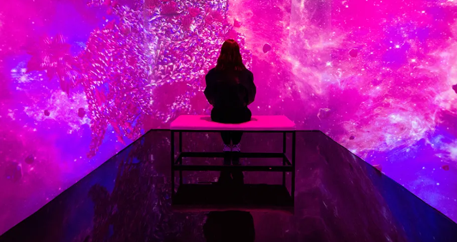 長(zhǎng)達(dá)一小時(shí)的體驗(yàn)從 Immersion Gallery 開(kāi)始,以一段 22 分鐘的電影通過(guò)強(qiáng)大音頻系統(tǒng)的全景投影探索 Viva Magenta(非凡洋紅) 的性格和深度。面對(duì)充滿活力的洋紅色,參觀者陶醉于純粹的喜悅中,感受到一種令人振奮的、無(wú)邊界的色調(diào),以及PANTONE 18-1750 Viva Magenta 歡迎任何對(duì)生活充滿熱情和叛逆精神的人。