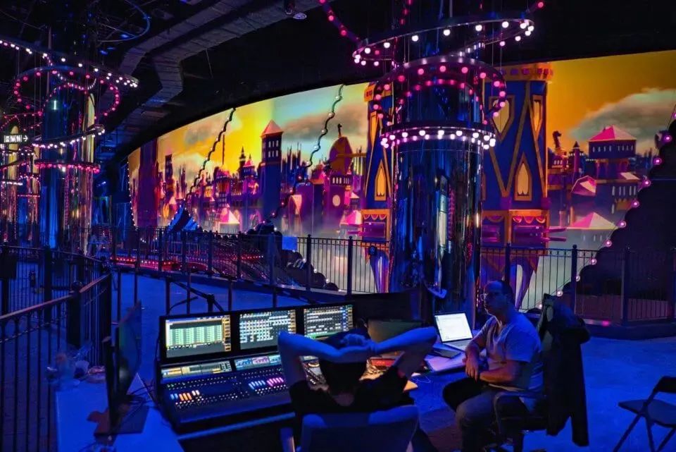 集成了先進(jìn)的視頻投影映射系統(tǒng),數(shù)千個動態(tài)控制的燈具,最先進(jìn)的音響系統(tǒng)和交互式安裝,精心策劃的游戲互動元素......