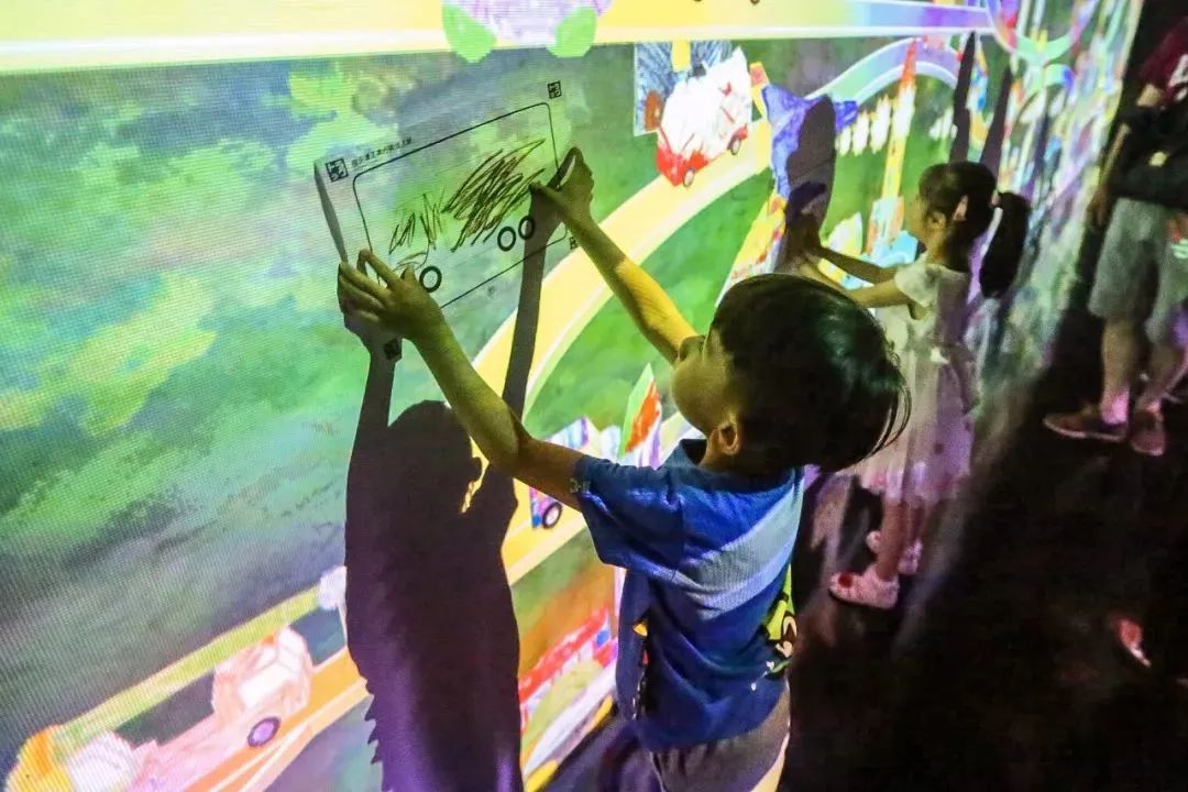 小朋友們化身為城市設(shè)計師,在各種汽車、UFO的圖紙上,填上自己喜歡的顏色,機(jī)器掃描一下,圖畫就會變成動畫出現(xiàn)在屏幕上啦!