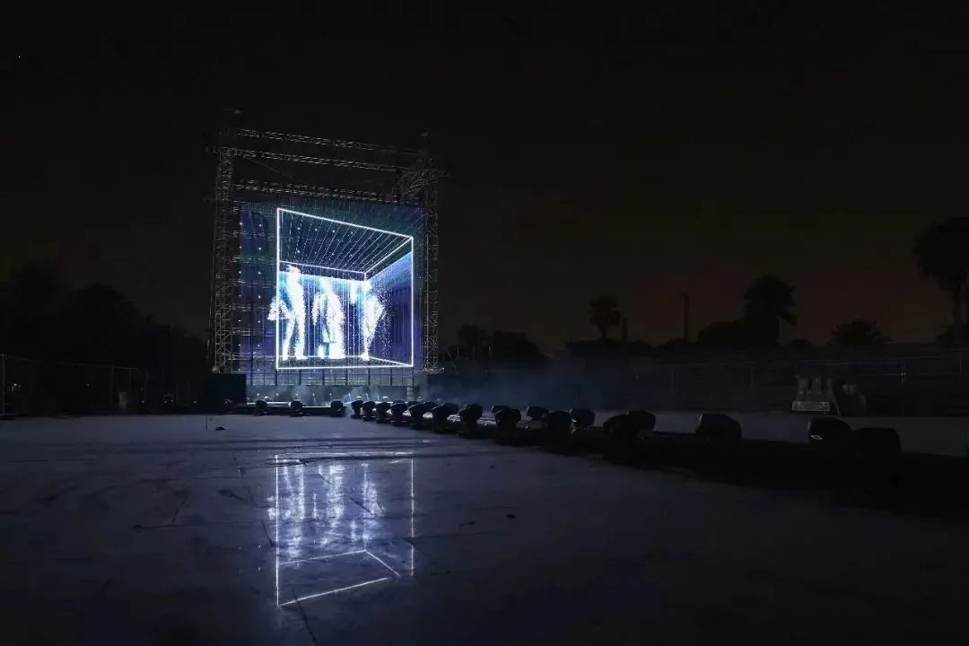 這個(gè)發(fā)光裝置長(zhǎng) 45 米,寬 20 米,高 10 米,包含 65 個(gè)電動(dòng)鏡面、90 束移動(dòng)的光和多聲道音響系統(tǒng)的完美同步相互作用——將創(chuàng)意的可能性提升到一個(gè)全新的水平。