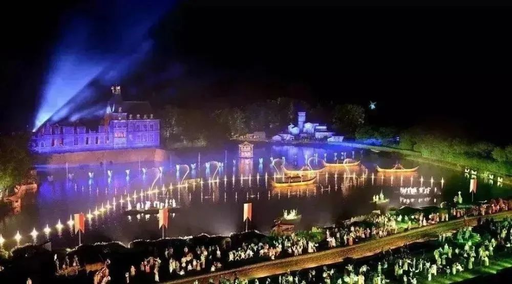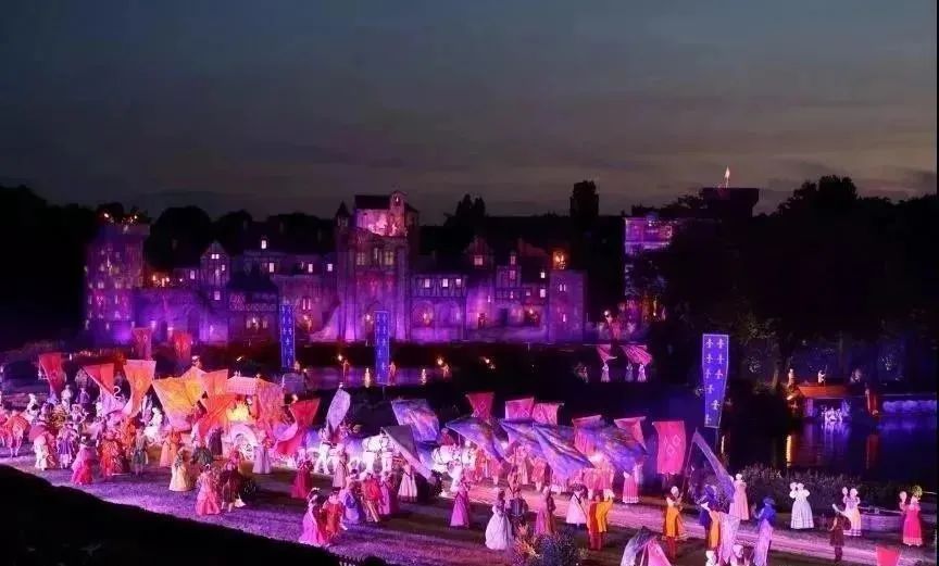 其中,La Cinéscénie是全球規(guī)模最大的夜間表演。整場表演長達(dá)1小時40分鐘,采用真人表演、煙花秀、燈光秀、3D投影、無人機(jī)等相結(jié)合的形式,將表演從海陸空多角度立體呈現(xiàn)。在場景感營造方面,主題樂園貫徹“游客將忘記二十一世紀(jì)”這一核心設(shè)計理念,在原有歷史建筑的基礎(chǔ)上打造出多個具有不同時代氛圍的村落,建筑、餐廳與酒店凸顯文化情調(diào)。