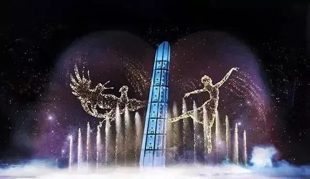 夜晚,《天幕水極》進(jìn)一步運用水幕、噴泉、音樂、全彩激光、3D影像、焰火等國際最新的多媒體藝術(shù)和技術(shù)成果,講述少年“羽”的理想與愛情,為游客呈現(xiàn)水火交融、電光流影、時空穿越的3D全感官浸入式震撼水秀體驗。