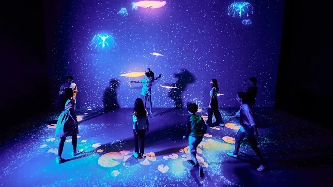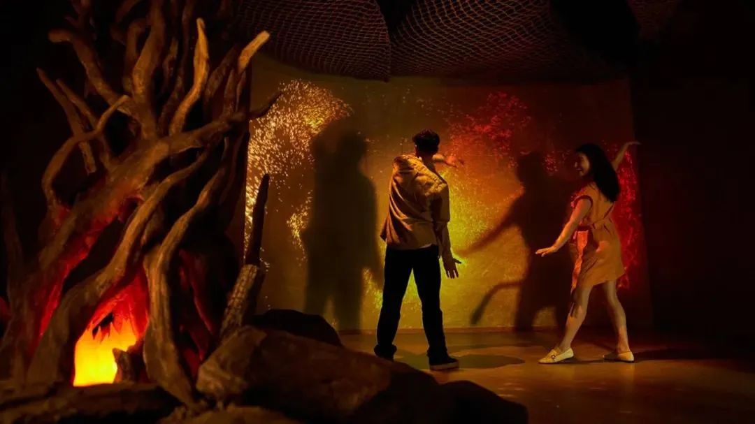 另外,互動(dòng)感十足的體驗(yàn)設(shè)施,讓觀眾在音樂與燈光的烘托下盡情舞蹈。隨著墻面生成的光點(diǎn)與火焰,通過AR技術(shù),觀眾仿佛騎上斑溪獸在阿凡達(dá)的山谷中翱翔俯沖。