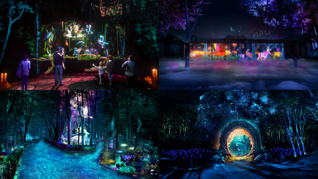 項(xiàng)目通過全新的數(shù)字新媒體與交互藝術(shù)裝置技術(shù),融入北戴河·鴿子窩公園的鳥主題及文化元素;結(jié)合光影、特效、交互及聲光電影音等多種手段設(shè)計(jì),在花園之中營(yíng)造光影變幻的神奇動(dòng)物夜。