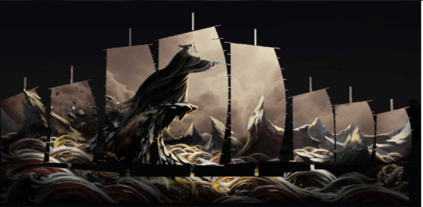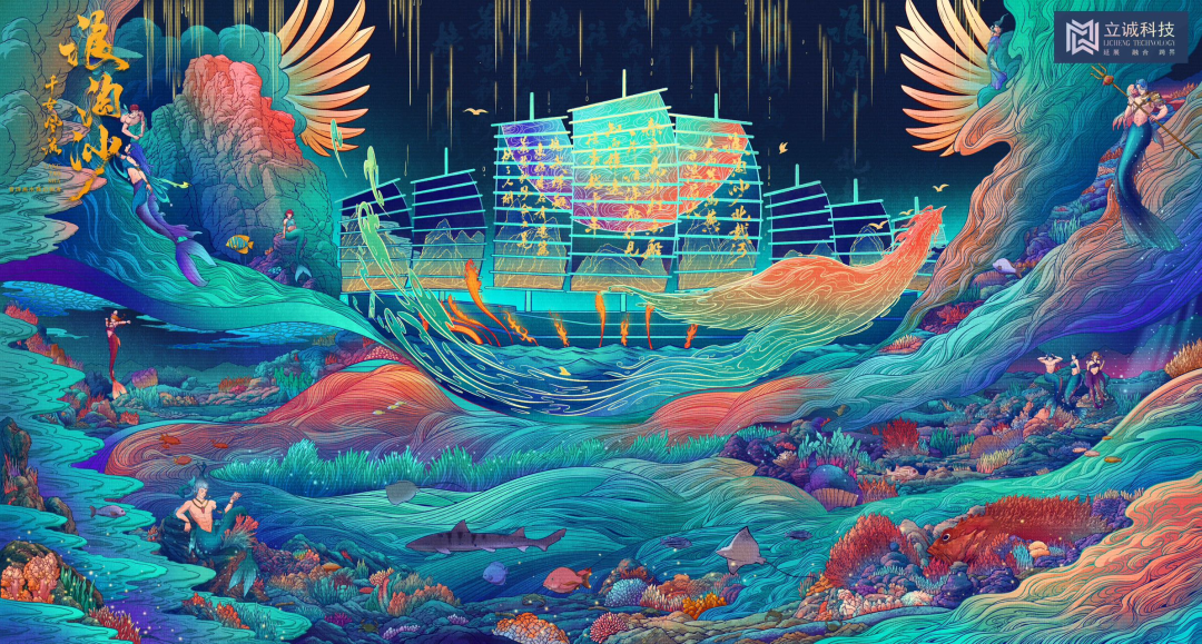 將富有歷史意義和大氣磅礴的傳世山海詩(shī)畫,運(yùn)用虛擬影像進(jìn)行光影呈現(xiàn)。